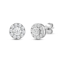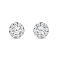 These round earrings showcase an effortlessly edgy spin to a simple, classic diamond cluster design. Each stud features a central gem on a faceted bezel surrounded by a halo of more diamonds. These earrings are perfect for someone who wants a timeless everyday earring with a bit of modern flair.
