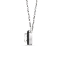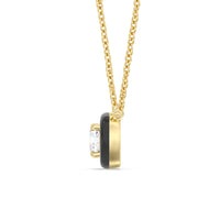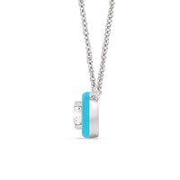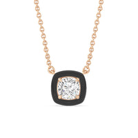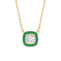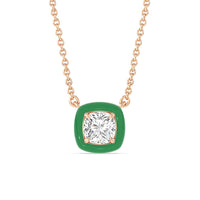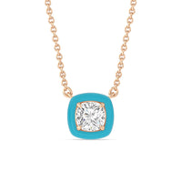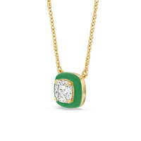 Color in fine jewelry? Why not? Unleash your playful side and embrace the unexpected with this cushion diamond necklace framed in a vivid ceramic bezel.