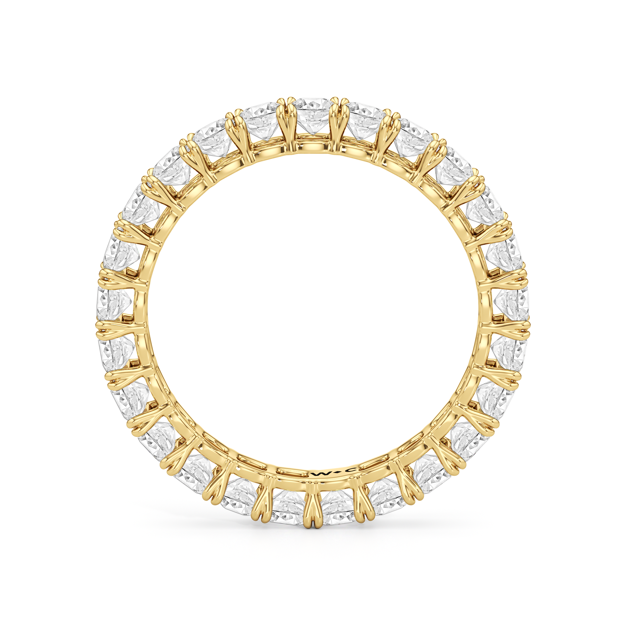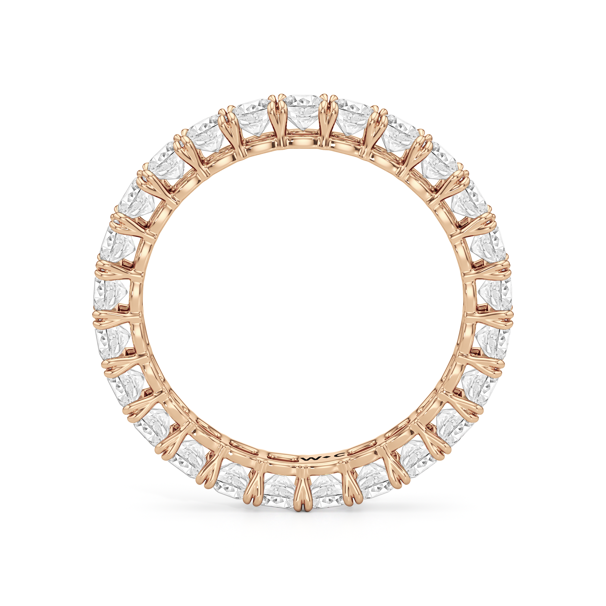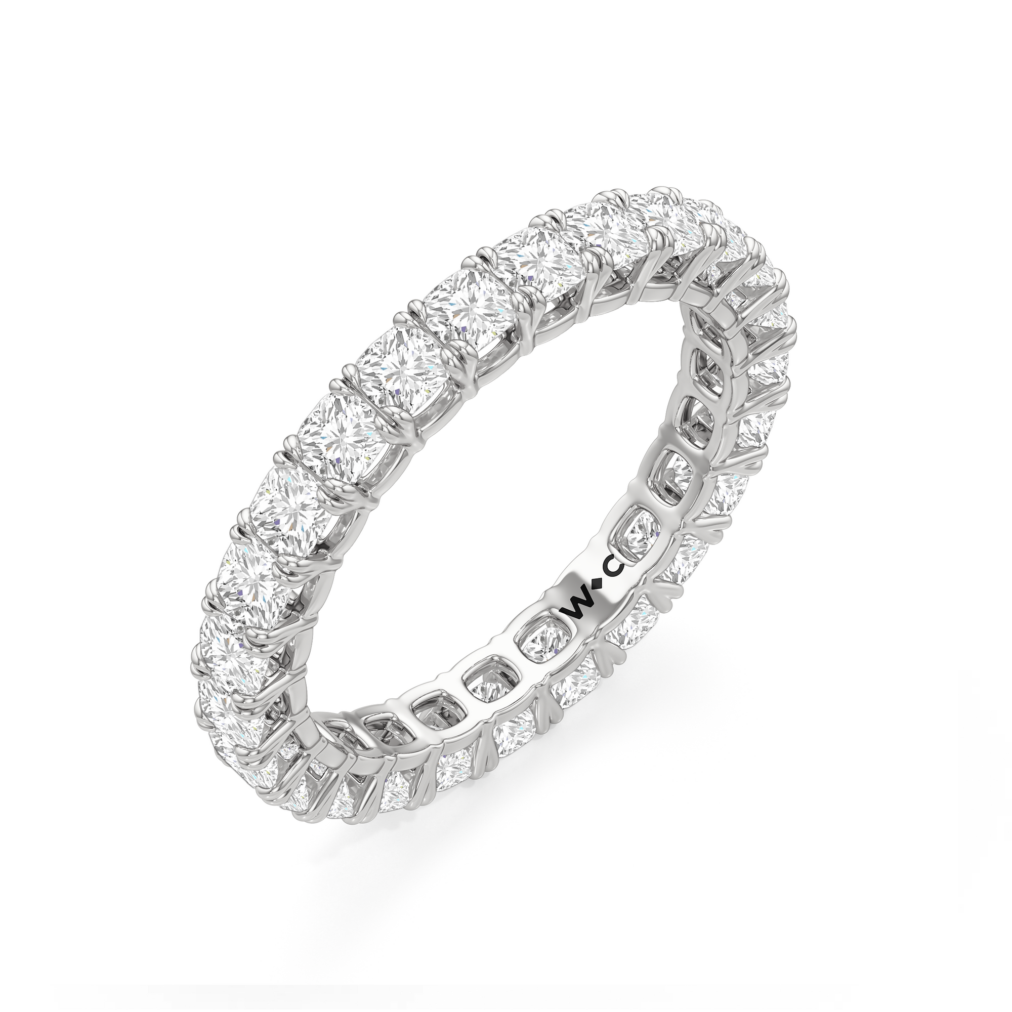Understated at a distance, intricate up close. Axis features a full circle of cushion-cut diamonds set in an open setting that maximizes light return. Each stone is mounted on split claw prongs, crafted with precision to reveal a subtle heart shape upon closer look.