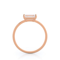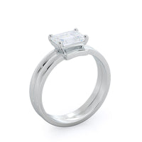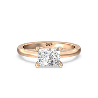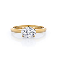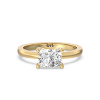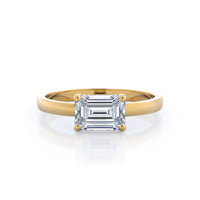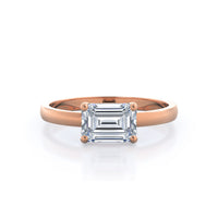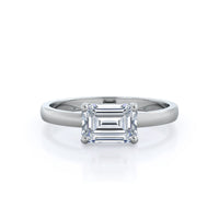 An east west style prong setting holds the center diamond for a distinctive look that sets this apart from classic solitaire rings.