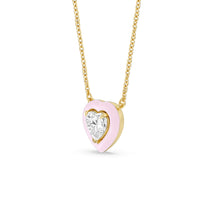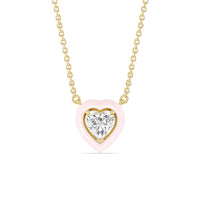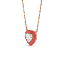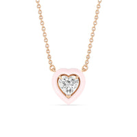 Embrace a subtle pop of color. This pendant necklace features a heart-shaped diamond expertly set on a frame in ceramic finish.