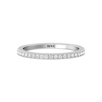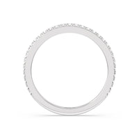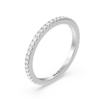 Shimmering pave diamonds cascade down this band to create a timeless beauty that will never go out of style. Designed to be paired with our classic hidden halo engagement Ring for a simple and sophisticated look.