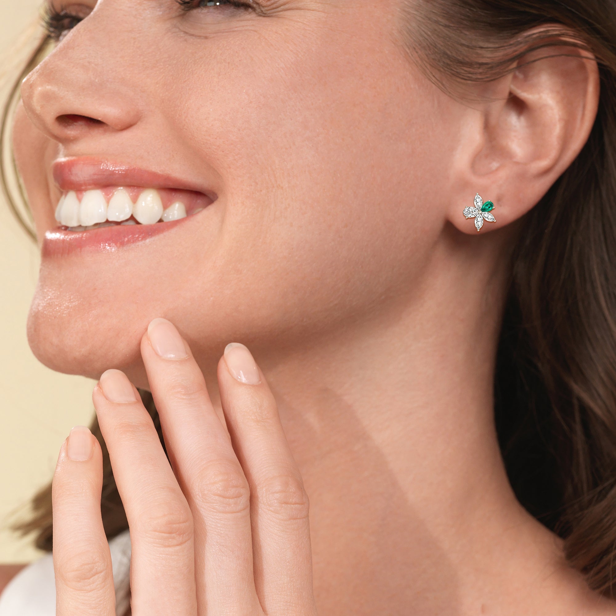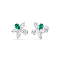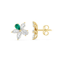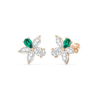 Admired for its graceful beauty, the plumeria is undeniably one of nature's most captivating blooms. These studs honor the plumeria flower's refined look and appeal, and are masterfully crafted to follow the trumpet-like profile of the blossom. Meticulously detailed with hand-selected Emerald, these make a statement that resonates with timeless elegance.