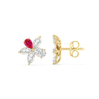 Admired for its graceful beauty, the plumeria is undeniably one of nature's most captivating blooms. These studs honor the plumeria flower's refined look and appeal, and are masterfully crafted to follow the trumpet-like profile of the blossom. Meticulously detailed with hand-selected Ruby, these make a statement that resonates with timeless elegance.