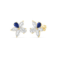 Admired for its graceful beauty, the plumeria is undeniably one of nature's most captivating blooms. These studs honor the plumeria flower's refined look and appeal, and are masterfully crafted to follow the trumpet-like profile of the blossom. Meticulously detailed with hand-selected Sapphire, these make a statement that resonates with timeless elegance.