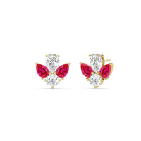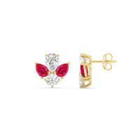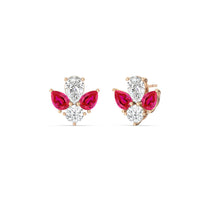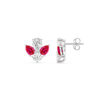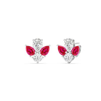 You can't fault the timeless appeal of these diamond and created ruby cluster earrings. Each stud features a symmetrical assembly of pear-cut created rubys, punctuated by a single round diamond on a four-prong basket setting. You'll love these earrings for their understated