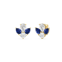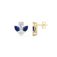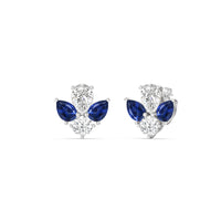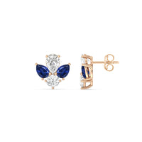 You can't fault the timeless appeal of these diamond and created sapphire cluster earrings. Each stud features a symmetrical assembly of pear-cut created sapphires, punctuated by a single round diamond on a four-prong basket setting. You'll love these earrings for their understated