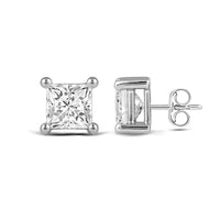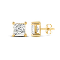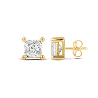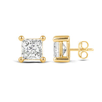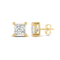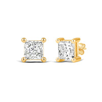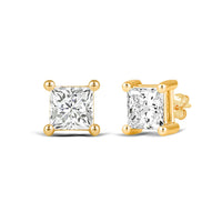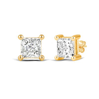 Simple and Stunning, These Princess Brilliant-Cut Diamond Studs Glisten From Every angle. The Carefully Matched Diamonds are Set In Four-Prong Baskets Of Gold For 360 Degree Sparkle.