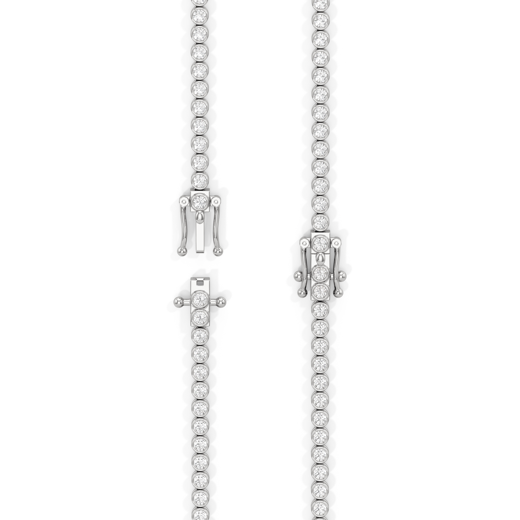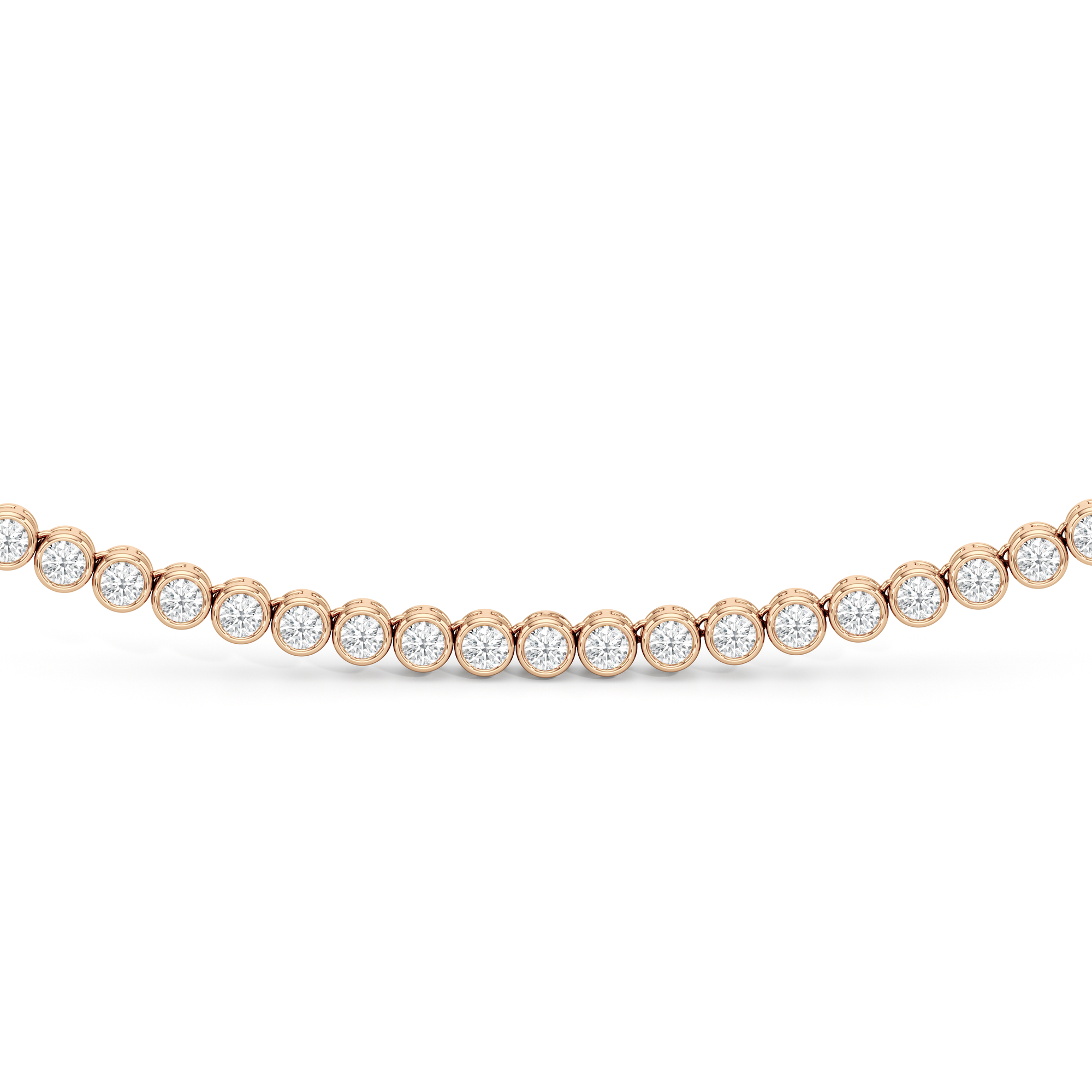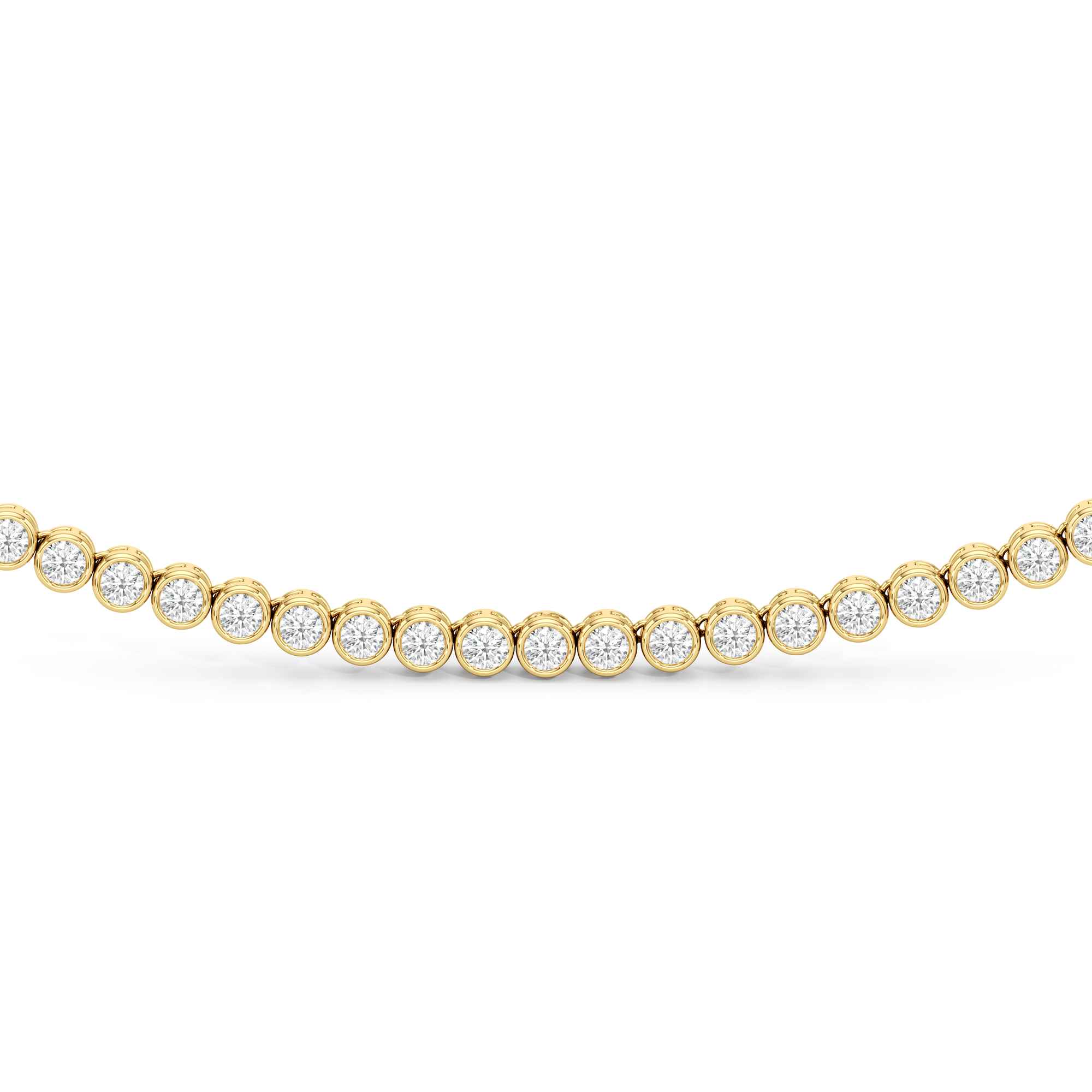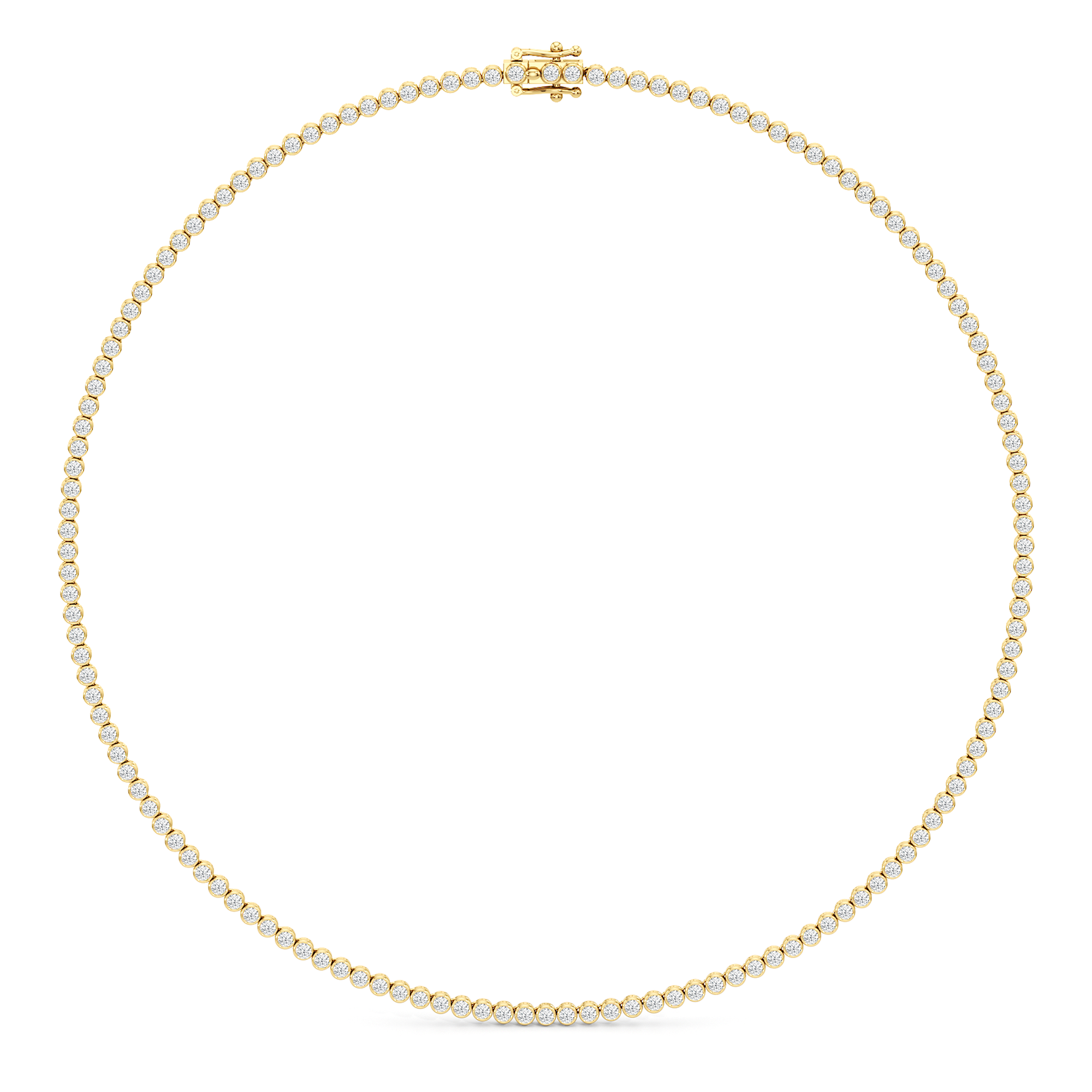 The Classic Round Bezel Diamond Tennis Necklace mixes being classic with on-trend elegance. The round bezel diamonds create a minimalistic look that give it an added flair. This design captures the enduring appeal of classic jewelry while staying perfectly in step with today's understated luxury trends.