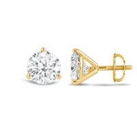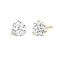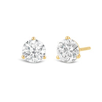 Simple and Stunning, These Round Brilliant-Cut Diamond Studs Glisten From Every angle. The Carefully Matched Diamonds are Set In Three-Prong Baskets Of Gold For 360 Degree Sparkle.