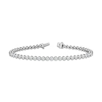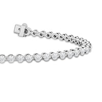 Continuously sparkling and endlessly versatile, this diamond tennis bracelet is that jewelry piece that will never fail you. This luxurious wrist accessory features a twinkling string of round diamonds set on a secure double-pronged basket. It can blend well with any outfit and can transition beautifully from casual to formal, day to night.