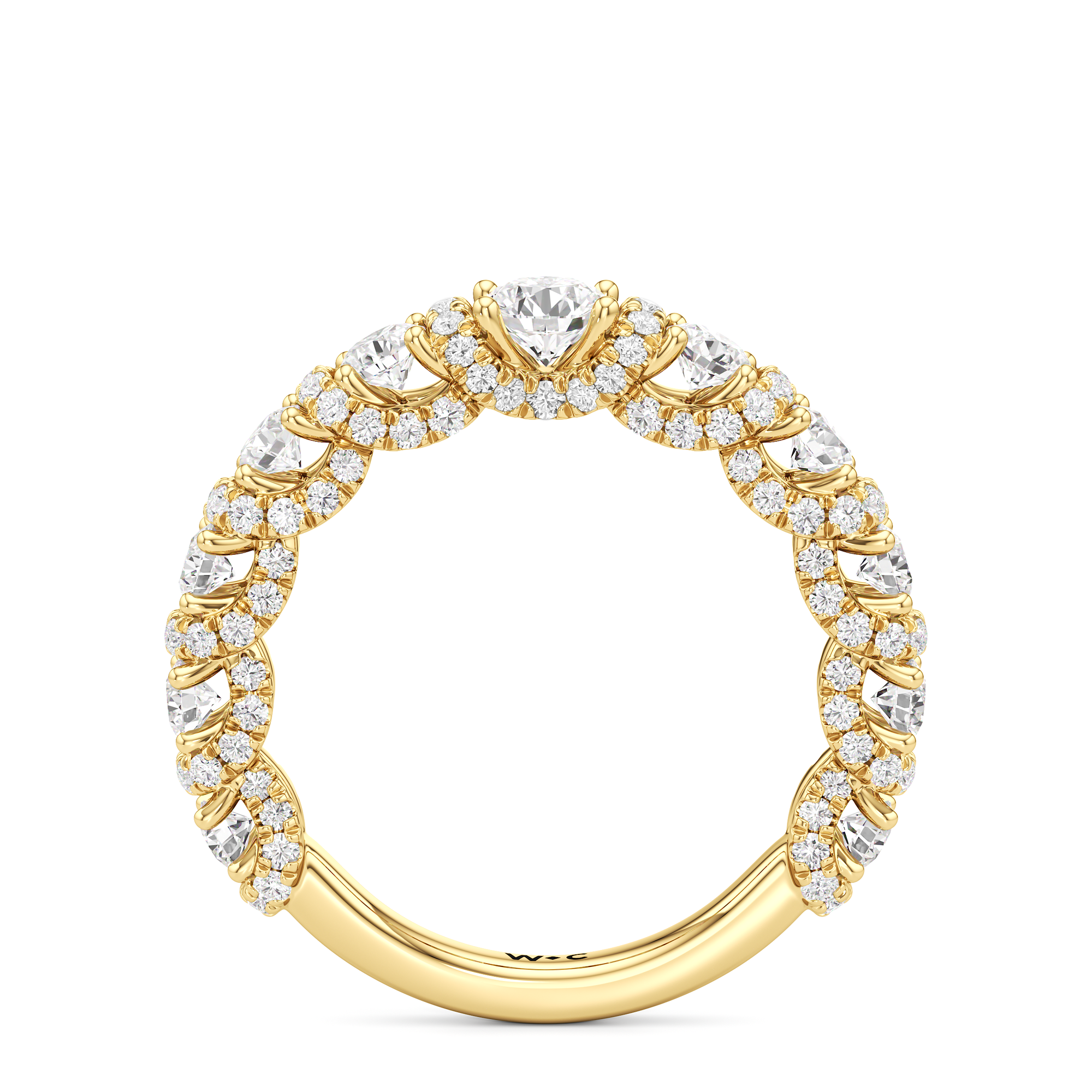 A luxe round diamond anniversary band inspired by the sweeping architecture of Fulton Street in New York City. A continuous line of round diamonds delivers timeless brilliance, complemented by subtle