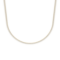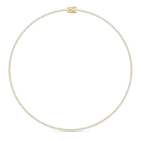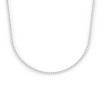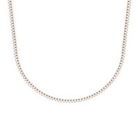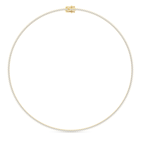 Offering seamless sophistication, this diamond tennis necklace is the defining piece that will complete your signature look with classic refinement. The diamonds, which are uniform in size and spacing, are mounted on a classic three-prong setting that offers a more delicate look. A sturdy, well-integrated clasp ensures a secure fit.