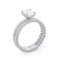 An engagement ring with a beautiful coiled band and accent diamonds can't be paired with just any band. So we took all those elements you love from the diamond ring and replicated them for a matching wedding band worthy of being included in this sparkling wedding ring stack.