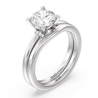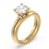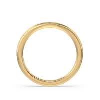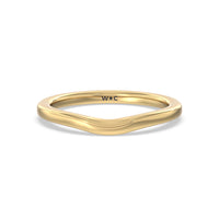 This curved fine line wedding band is perfectly designed to complement our diamond collar fine line engagement ring style for a modern and sophisticated look. Set in gold.