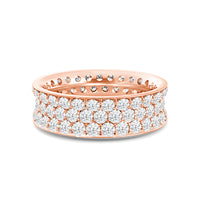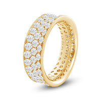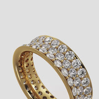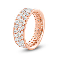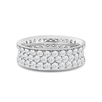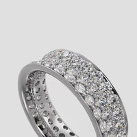 This eternity ring is in a class by itself. It features a wide band with a concave silhouette adorned with three rows of neatly set round diamonds. It's a fashion-forward choice for those who prefer their sparkler to be a shimmering stand-out.