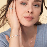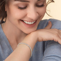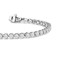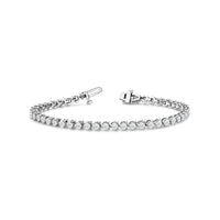 An incredibly versatile piece of diamond jewelry that will complement your everyday attire. This tennis bracelet displays the perfect balance of edgy and elegant with its glittering line of round diamonds set on three-prong baskets. Let the contemporary appeal of this tennis bracelet enrich your accessorizing style.
