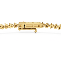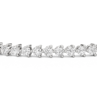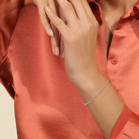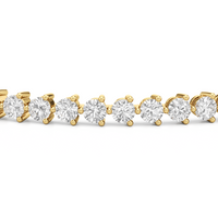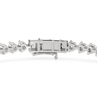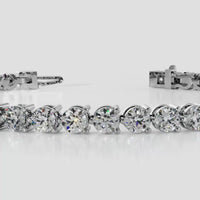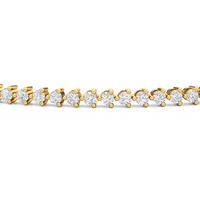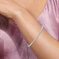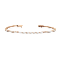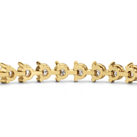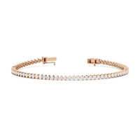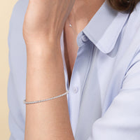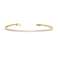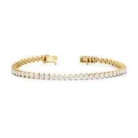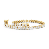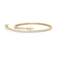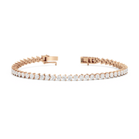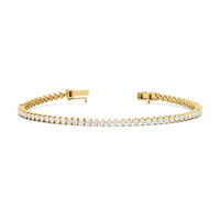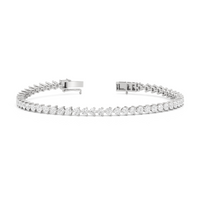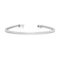 An incredibly versatile piece of diamond jewelry that will complement your everyday attire. This tennis bracelet displays the perfect balance of edgy and elegant with its glittering line of round diamonds set on three-prong baskets. Let the contemporary appeal of this tennis bracelet enrich your accessorizing style.