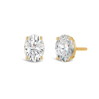 Simple and Stunning, These Oval Brilliant-Cut Diamond Studs Glisten From Every angle. The Carefully Matched Diamonds are Set In Four-Prong Baskets Of Gold For 360 Degree Sparkle.