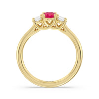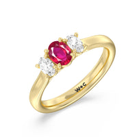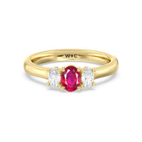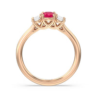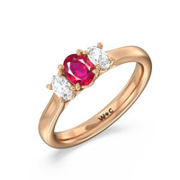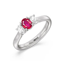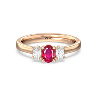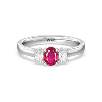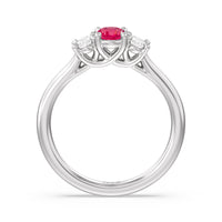 A striking style featuring a centerpiece created Ruby highlighted by two smaller matching diamonds either side.