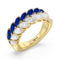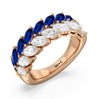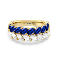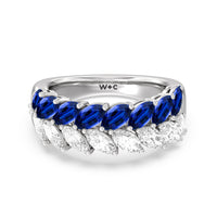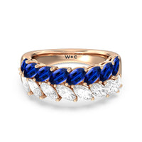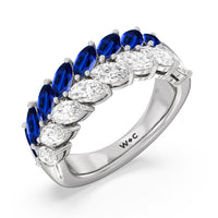 Your special someone with a big, hard-to-ignore personality will surely be drawn to the breathtaking sparkle of this ring. Crafted in white gold, the shank has a wide top dressed with marquise-cut stones in a wheat pattern. The creative and distinctive style of this anniversary band makes it the perfect choice for marking a milestone in your larger-than-life love story.