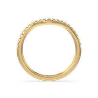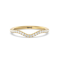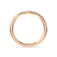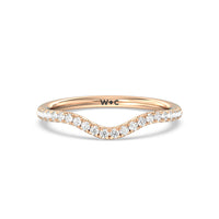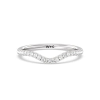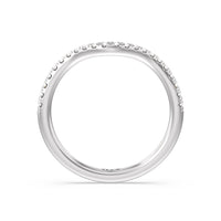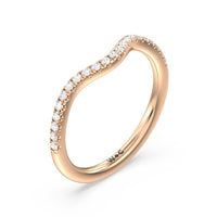 This curved diamond set wedding band is perfectly contoured to complement our criss cross shank halo solitaire engagement ring for a simple and sophisticated look.