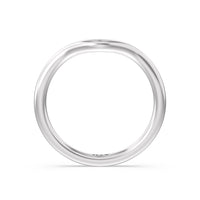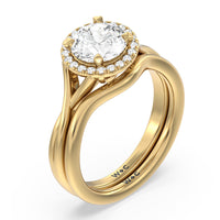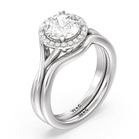 This curved band is perfectly contoured to complement our criss cross shank halo solitaire engagement ring for a simple and sophisticated look.