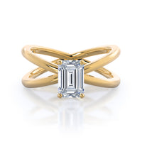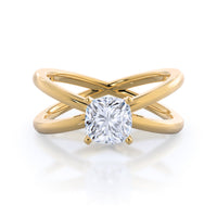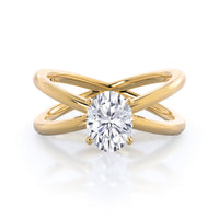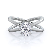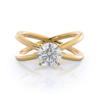 Two smooth bands cross over one another for a stunning, multi-dimensional look. This ring is has a memorable look, perfect for the modern woman.