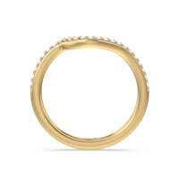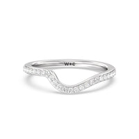 This curved diamond set wedding band is perfectly contoured to complement our crossover arm studded shank engagement ring for a simple and sophisticated look.