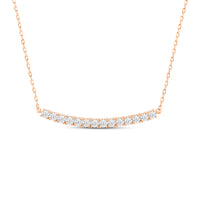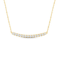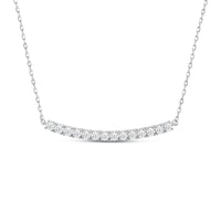 Bar none, your most dynamic and adaptable diamond necklace. This chic necklace features a curved bar of glitter traced with round diamonds. You can enjoy its subtle sparkle every day while dressing up, or down.