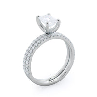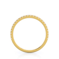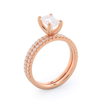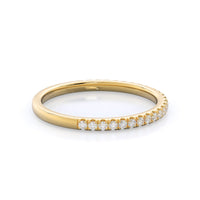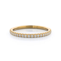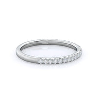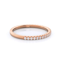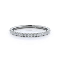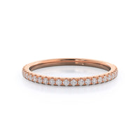 A ring as delicate and elegant as our micropave setting needed a matching wedding band that flawlessly copied this grace. So we crafted a pave wedding band just as thin and delicate as the shank of your engagement ring for a wedding ring stack that perfectly captures her distinct feminine style.