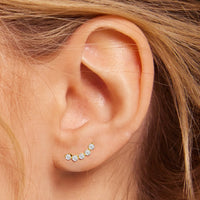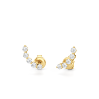 Diamond climber earrings of effortless elegance. Their graceful design never appears rushed but rather cascades naturally along the earlobe. The diamonds present a seamless ascent of brilliance, creating a stacked effect without the need for extra piercings