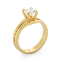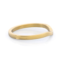 To flatter the unique shape of our Widening Solitaire Engagement Ring, this stacking wedding band gently sways to the side at the top, leaning just enough to hug the curves of your diamond ring. And to make sure your engagement ring is perfectly matched, the wedding band features a flat top.