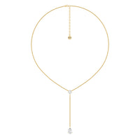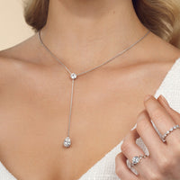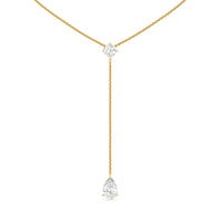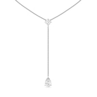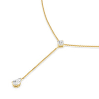 This diamond lariat necklace will easily become your new go-to accessory. It features a Y-shaped chain punctuated by two diamond pendants. Sealing the round loop is a cushion-cut diamond that reflects white and colored light well. A pear-cut diamond sits at the end of the necklace's linear drop. The stylish look of this piece is suitable for both casual and formal wear.