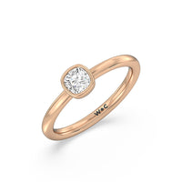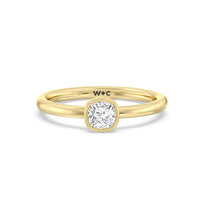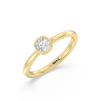 A low-key sparkler that makes a statement with its simplicity. This polished band with a single bezel-set cushion-cut diamond is perfect for everyday wear. It's a pared-down piece that you can wear anytime, with anything, in any setting, and when mixing and matching. Its no-frills silhouette and subtle sparkle won't let you or any of your outfits down.