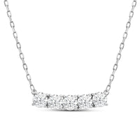 The perfect choice when you want to take your sparkle back to basics. This minimalist necklace that's perfect for daily wear features a horizontal layout of five round prong-set diamonds. The classic styling and subdued sparkle of this dainty necklace make it wearable season after season.