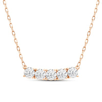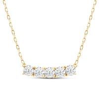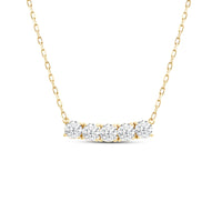 The perfect choice when you want to take your sparkle back to basics. This minimalist necklace that's perfect for daily wear features a horizontal layout of five round prong-set diamonds. The classic styling and subdued sparkle of this dainty necklace make it wearable season after season.
