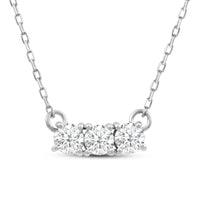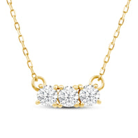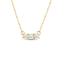 Let the subtle and sweet sparkle of this diamond necklace instantly upgrade the look of your LBD, business suit, or your basic jeans and tee. This dainty piece features a short row of five diamonds held by a yellow gold necklace chain. This necklace with a radiant five-stone pendant looks perfect when worn alone or layered with other minimalist necklaces.