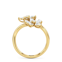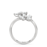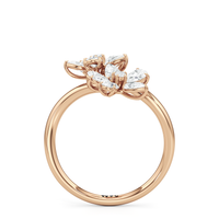 Each petal is adorned with shimmering diamonds, exuding an ethereal sparkle, while the gracefully curved band enhances the ring’s fluidity and elegance. Crafted in precious metal of your choice, the bypass design creates a contemporary yet timeless silhouette, making this ring a perfect statement of grace and sophistication.