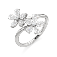Inspired by the delicate charm of daisies, the Daisy Duet Diamond Bypass Ring is a breathtaking fusion of nature and luxury. This exquisite design showcases two radiant five-petal diamond flowers, gracefully crossing each other in a unique bypass setting that symbolizes harmony and movement.