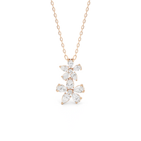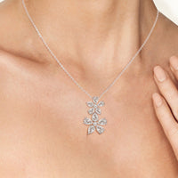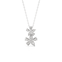 Inspired by the timeless charm of daisies, the Daisy Duet Diamond Pendant is a celebration of nature’s beauty and refined elegance. This enchanting piece features two five-petal diamond flowers, delicately clustered together in a cascading design. One dazzling bloom gracefully suspends below the other, creating a mesmerizing movement that catches the light from every angle. Each petal is encrusted with shimmering diamonds, radiating a soft yet striking glow, while the expertly crafted setting enhances their brilliance. Suspended from a fine chain, this pendant exudes a delicate yet luxurious appeal, making it a perfect statement piece for any occasion.