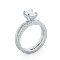The accent diamonds on our Diamond Basket Solitaire Engagement Ring can easily be spotted by admiring eyes, but what about by the woman wearing it? We thought she needed a pop of sparkle she could enjoy, so we studded this ring's matching wedding band with accent stones halfway down each side.