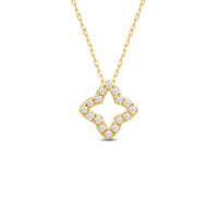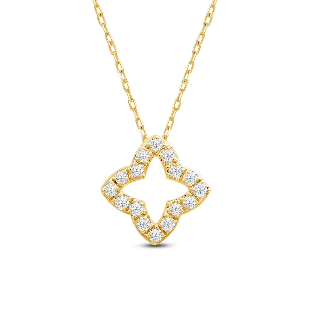 Utterly minimalistic with just a bit of edge, this geometric diamond necklace can take your accessorizing game to new heights. It features a glittering four-point star pendant traced with round diamonds. This is one of those accessories that can be worn from day to night effortlessly.
