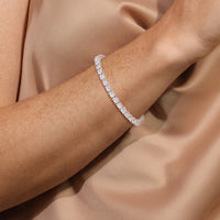 A perfect starter for your tennis bracelet collection. This diamond bracelet is composed of oval diamonds continuously set on a chain of pronged criss-cross baskets. The strand of brilliance seamlessly adapts to any style, look, and wrist size.