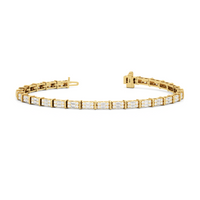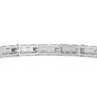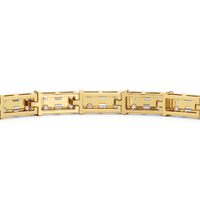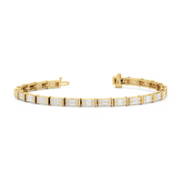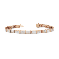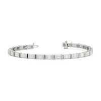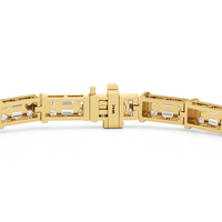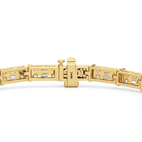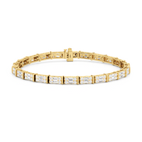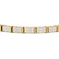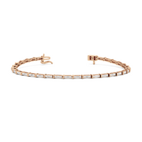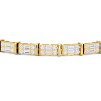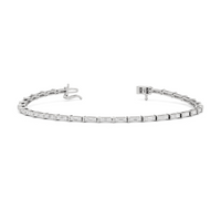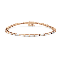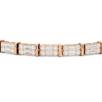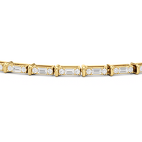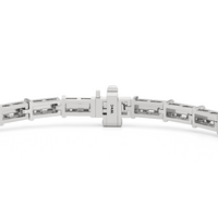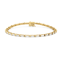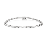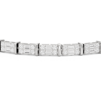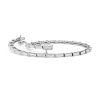 An essential statement piece perfectly styled for those who appreciate refined glamour. Duos of round diamonds are set in between duos of baguette diamonds in an east-west setting, forming a continuous line of brilliant bars that create a graceful sequence of sparkle and structure.
