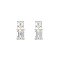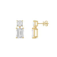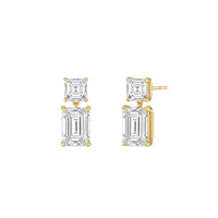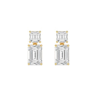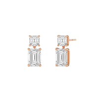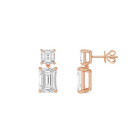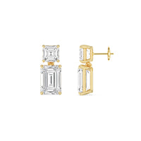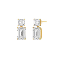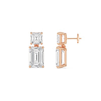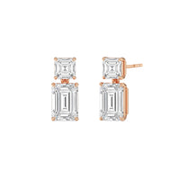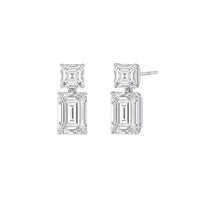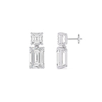 The distinct emerald diamond paired with the simply beautiful Asscher diamond flashes bright light but does so in a retro-chic way. These diamond drop earrings of vintage inspiration make for an excellent choice for the discerning jewelry lover.