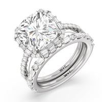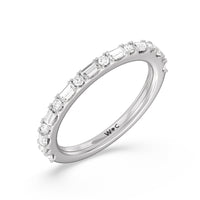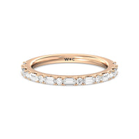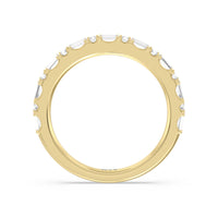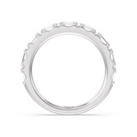Shimmering pave diamonds cascade down this band to create a timeless beauty that will never go out of style. Designed to be paired with our elegance baguette halo pave engagement ring for a simple and sophisticated look.