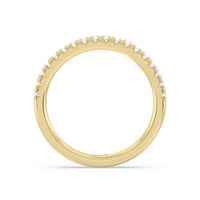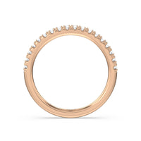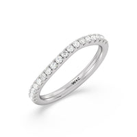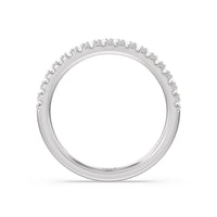 This curved diamond set wedding band is perfectly contoured to complement our elegance bypass hidden halo diamond engagement ring for a simple and sophisticated look.