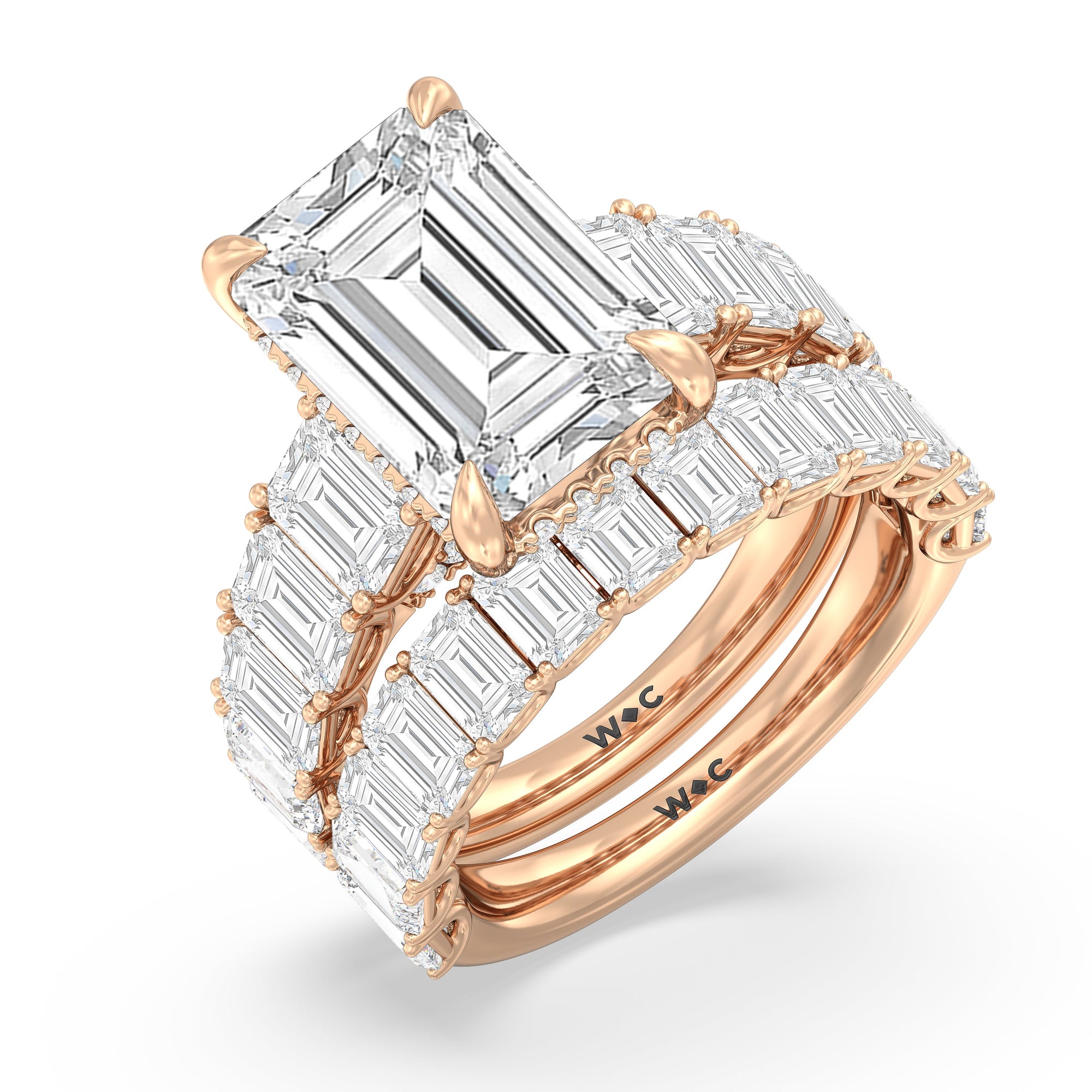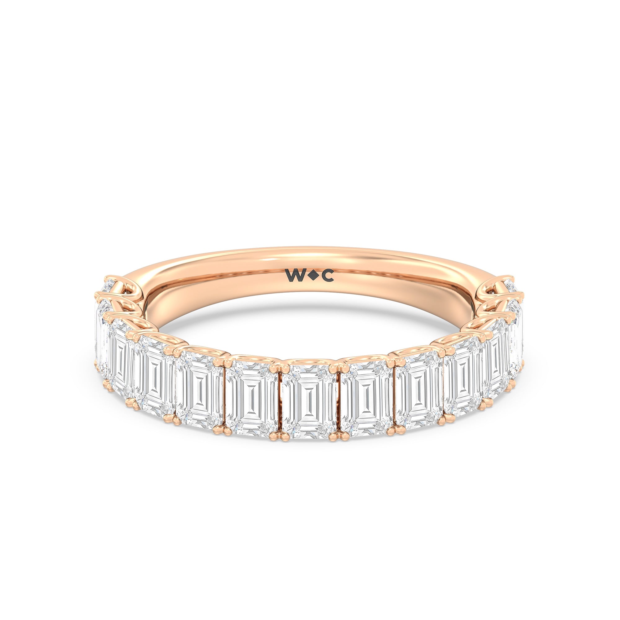 Shimmering pave diamonds cascade down this band to create a timeless beauty that will never go out of style. Designed to be paired with our elegance emerald accent hidden halo engagement ring for a simple and sophisticated look. Set with 2.63 ct total diamond weight.