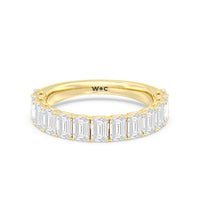 Shimmering pave diamonds cascade down this band to create a timeless beauty that will never go out of style. Designed to be paired with our elegance emerald accent hidden halo engagement ring for a simple and sophisticated look. Set with 2.63 ct total diamond weight.